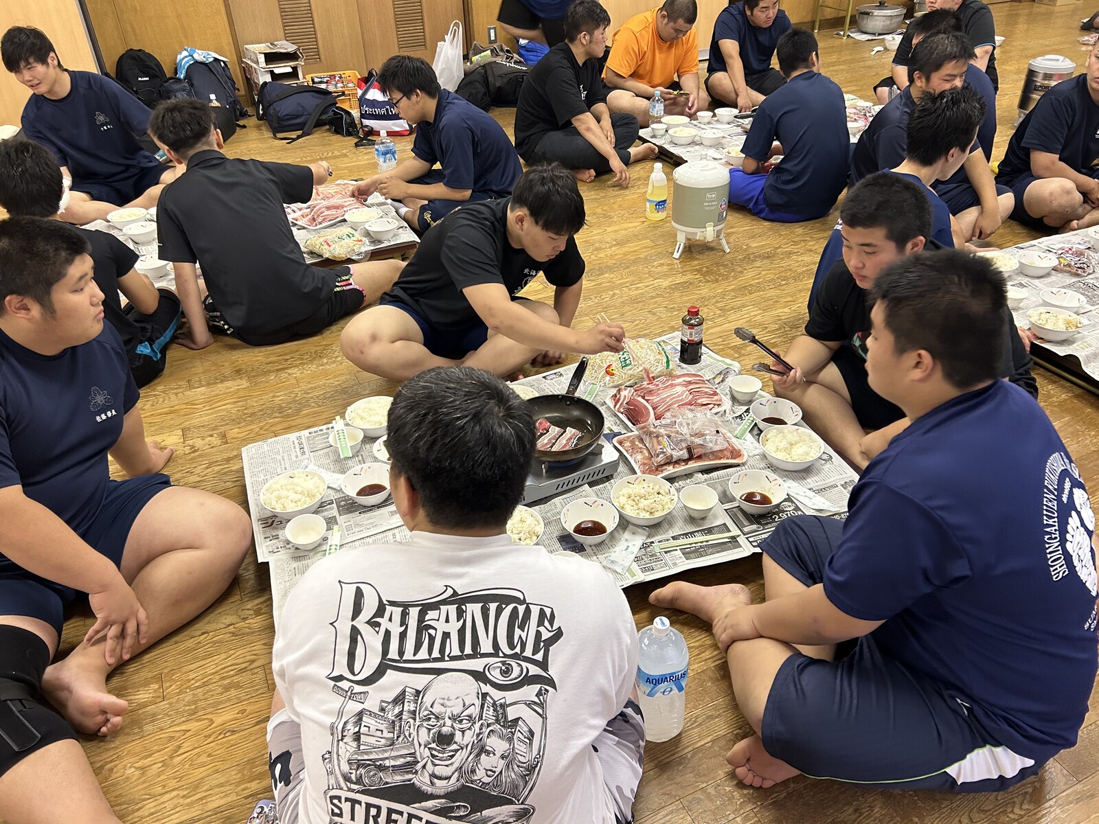 また、食事は、4卓それぞれに分散して「他校同士でコミュニケーションを図ることに合同合宿の意味がある!」をモットーにしている関川先生の計らいで各校の選手で固まらずに食事をさせ、本校選手たちも普段できない他県の選手達との親交をより深めることができました。